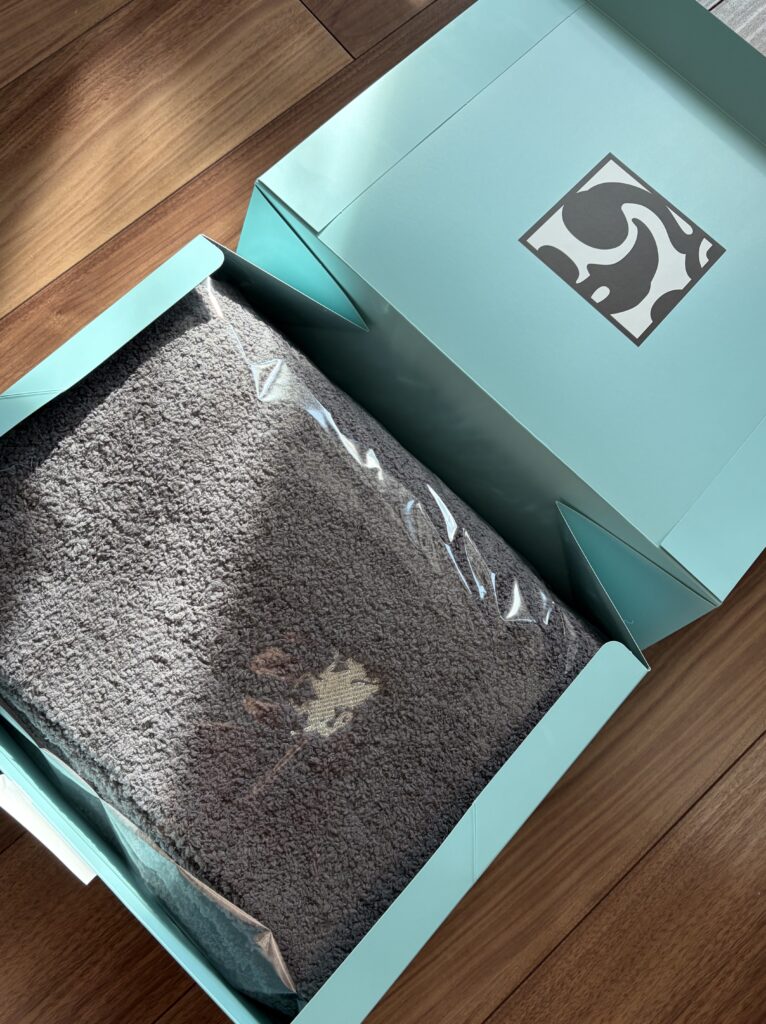 ぱかっ!ひゃー、いいじゃん!ブラック!サイズは150×110㎝の大判だし、これからの寒い季節に必需品!