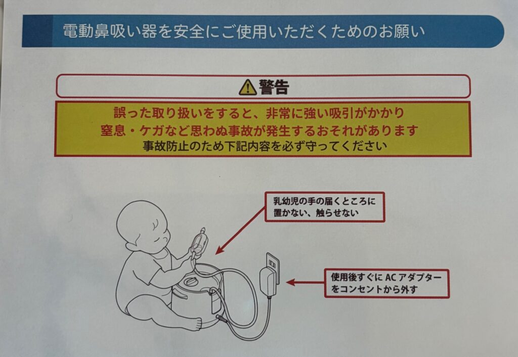 実際に電源を入れて実験してみましたが(マネしないでください)、以前のように空気がぎゅーっと圧縮されることはなく、ちゃんと抜けるように設計されているので、強い力で吸い付かれるようなことはなくなっていました。鼻水の吸引力は変わらず、きちんと吸えます。ピジョンすごい。ちゃんと改良されています。